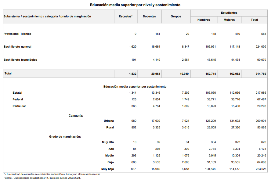 Prontuario estadístico del Estado de Veracruz, ciclo escolar 2023-2024. Recuperado de: https://www.sev.gob.mx/servicios/anuario/Prontuarios/ProntuarioIniciodeCursos2023-2024.pdf