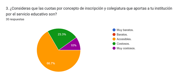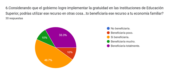 La encuesta es corta, sin embargo, el primer día no muchos estudiantes respondieron, así mismo, la retroalimentación fue de confianza por el anonimato, pero incomodidad en las cuestiones financieras personales, los docentes mencionaron que no hubo dudas específicas sobre las preguntas, así mismo, uno de ellos añadió una propuesta para poder integrar al instrumento si los alumnos consideraban que el gobierno debe sustituir esas cuotas con mayor recurso para compensar la disminución de ingresos, lo cual me pareció acertado y enriquecedor para la parte cualitativa del estudio.
