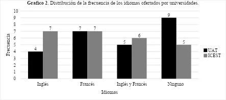 Los idiomas proporcionados por las instituciones fueron inglés y francés, mientras en el ICEST los alumnos prefieren por igual inglés y francés con un 28%, de los cuales fueron 7 estudiantes que eligieron francés y 7 que eligieron inglés, en la UAT la mayoría prefirió elegir el francés como lengua extranjera con un 28% que representa 7 estudiantes.